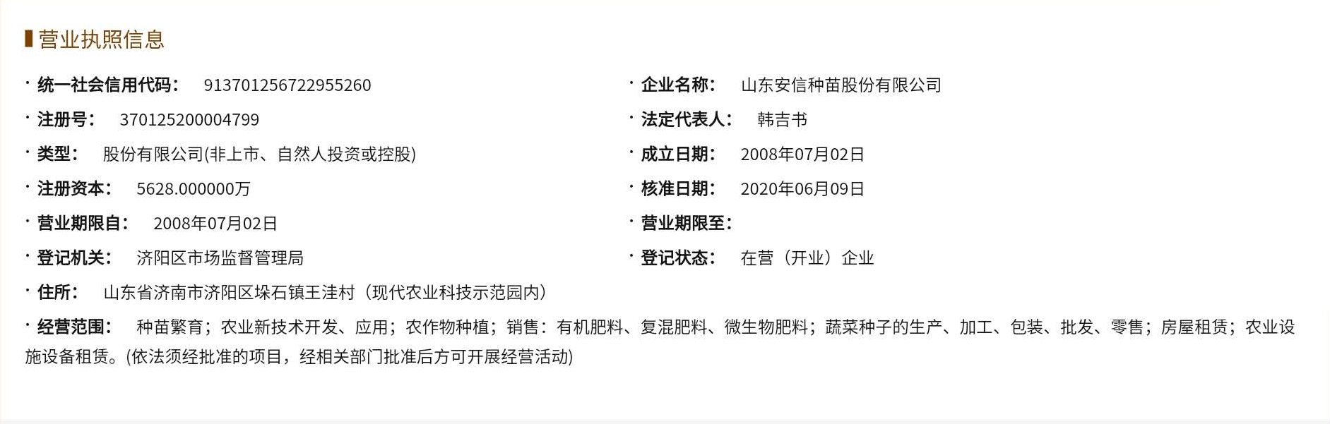 查看更多山東安信種苗股份有限公司 山東安信種苗股份有限公司,成立于2008年7月,注冊資本5628萬元,是中國蔬菜育苗行業第一家上市高新技術企業,股票代碼:831492,主營蔬菜種苗培育、蔬菜種子生產銷售、農業新技術開發應用、農資銷售服務、農業園區技術服務、智能農機設備制造;物聯網溫室自動化系統、水肥一體化系統工程。目前公司占地300畝,資產總計達1.7億元,擁有15萬㎡的現代化育苗溫室,年育苗能力超過2...