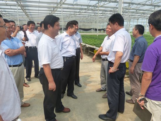 2014年8月15日,聊城冠縣副縣長王守良一行參觀安信甜椒苗基地。