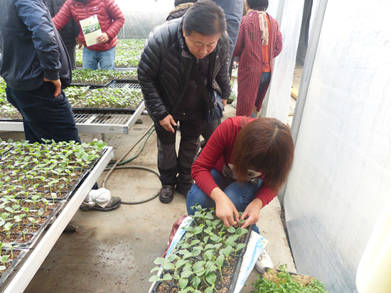 韓國農水產大學教授觀看安信工作人員嫁接黃瓜苗